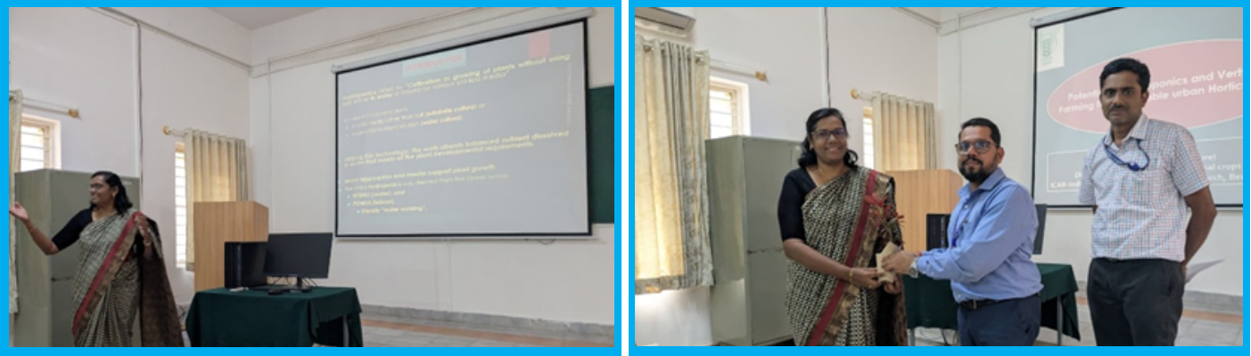 Guest lecture on “Potential of Hydroponics and Vertical Farming for Sustainable Urban Horticulture” by Dr. Safeena S. A., Principal Scientist, ICAR–IIHR, Bengaluru, on 24th September 2025