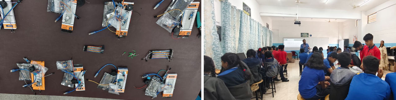 The Institution’s Innovation Council of Sir MVIT in association with Electronics and Communication Engineering organized “Innovation & Entrepreneurship Outreach Program,” at ATL, PM SHRI Kendriya Vidyalaya Air Force Station, Yelahanka on 11th August 2025. The aim of the event was to foster creativity and Innovation among school students, to promote hands on learning and engage students in workshops, idea-pitching sessions, and prototype-building to learn by doing and to guide students to create socially responsible innovations that can positively impact society. 50 school students participated in the event. Darshan Mahesh Naik and Deekshita Reddy P. students from S7 conducted the event. The event was coordinated by Dr. Sheetal Belaldavar, Associate Professor.