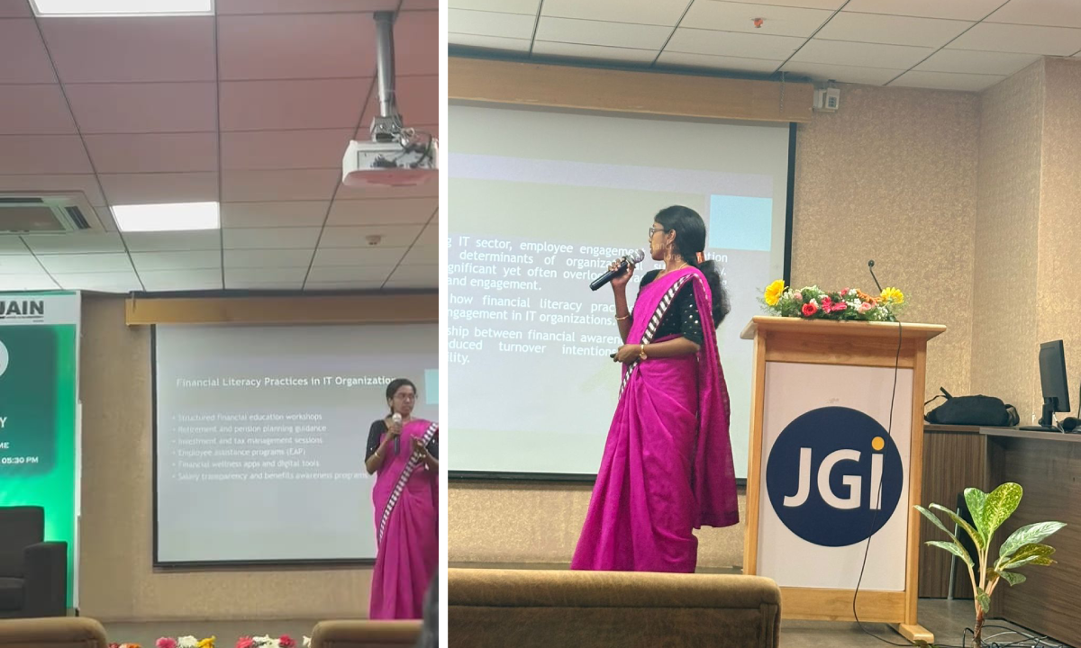 Ms. Ashwini A, Ms. Srilakshmi Venkata Rao, Ms. Vidhyashree M, Dr. Priyanka Sharma, has received 2nd Best Paper Award with Cash prize and certificate of Merit for the title “Financial Literacy Practices and Their Contribution to Sustainable Workforce Engagement in IT Organizations” Jain Deemed to be University on 26th February 2026.