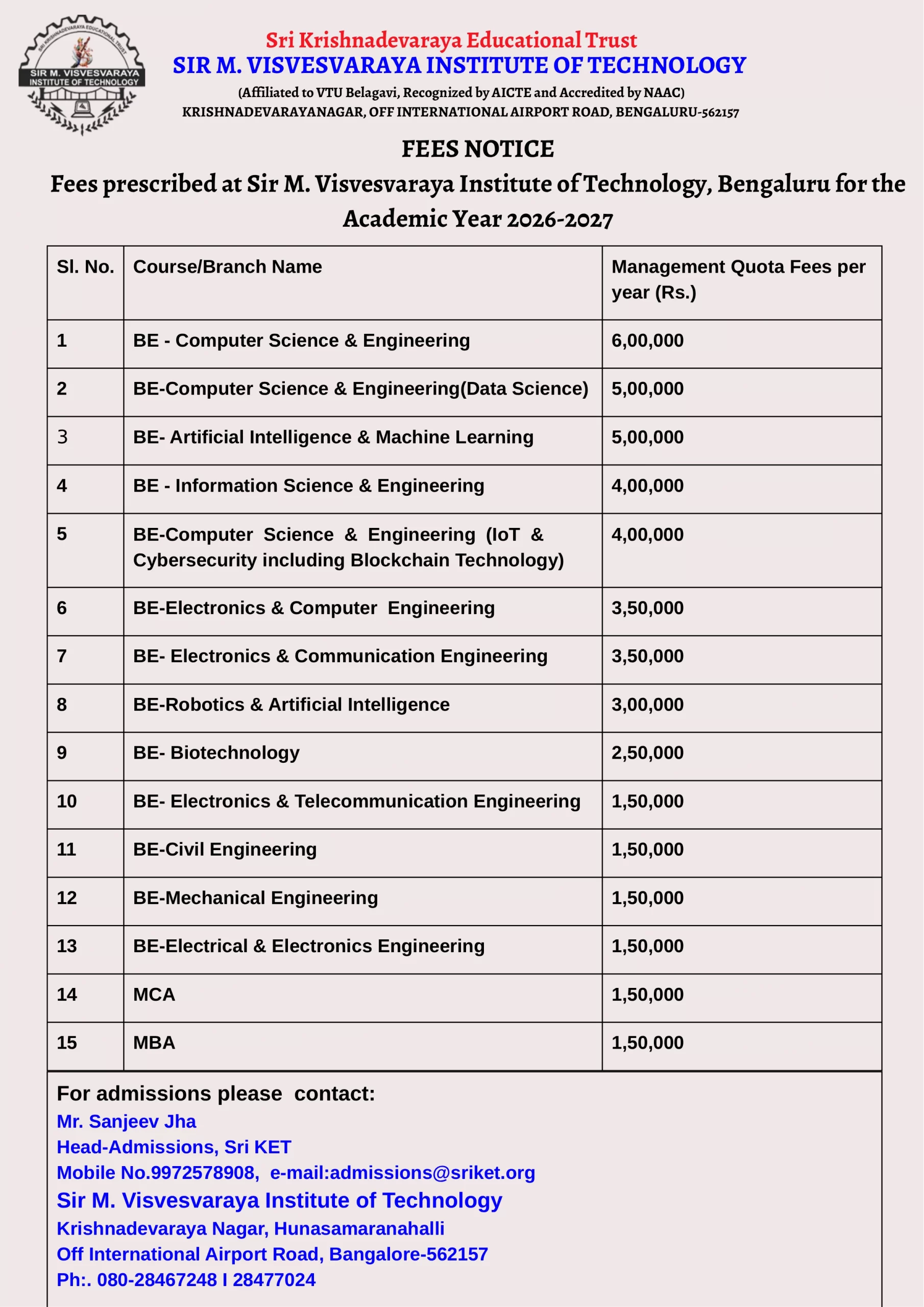 SIR M VISVESVARAYA INSTITUTE OF TECHNOLOGY